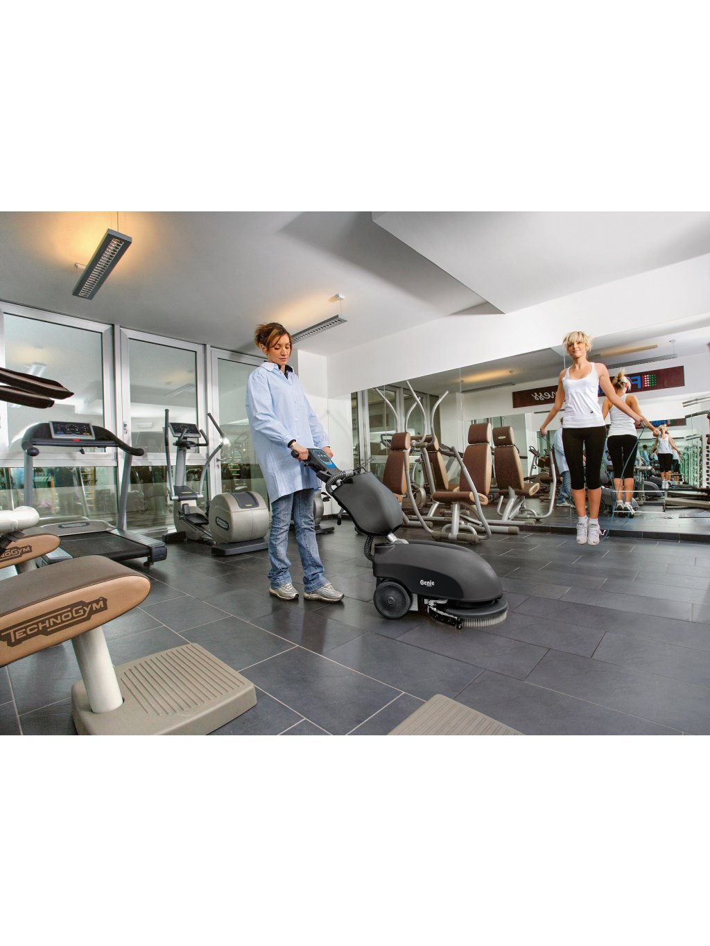 - Díky svým rozměrům a možnosti sklopení rukojeti je vytvořena maximální manévrovací schopnost, Genie 35 B tak velmi efektivně myje např. v rozích místností a podél stěn. Genie 35 B si stejně dobře poradí i se zastavěnými prostory.
